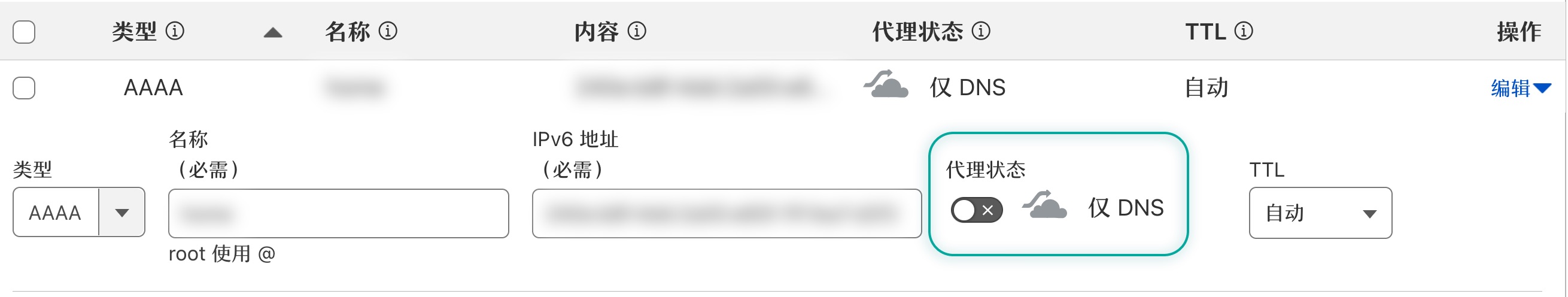 Cloudflare 代理后还能实现从外部双栈连接,顺带解决家宽只有公网 v6 的痛点。我真是天才(