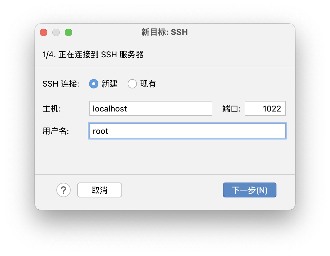 这里将容器内的22端口映射到了本地的1022端口。1022可替换为任意本地端口(只要没有冲突)