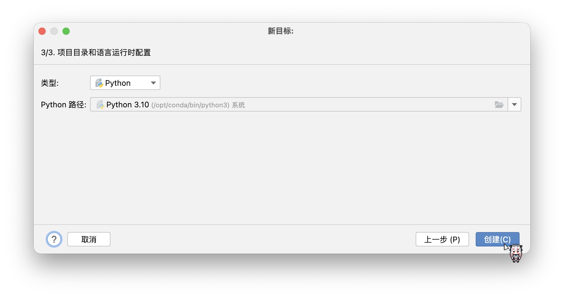 拉取完成后,可以看到 PyCharm 已经自动检测出了容器内的 Python 版本,选择你需要的那个继续就可以了: