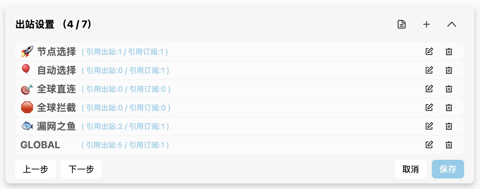 在出站设置中,系统提供了一些预设分类,鉴于我们只有一个节点,我建议直接进行如下设置: